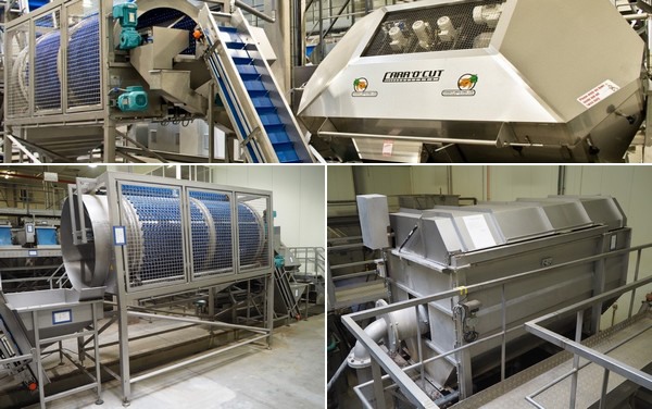 This includes the storage tank with pumps for the water purification system, the water decantation tank, the sand separator with submersible pump, both the purification and processing lines for carrots and celery, the processing line for baby carrots, the sorting line for carrots, the filling and packaging line, the palletising installation, the washing and packaging line and the drum filter screen with self-priming pump.