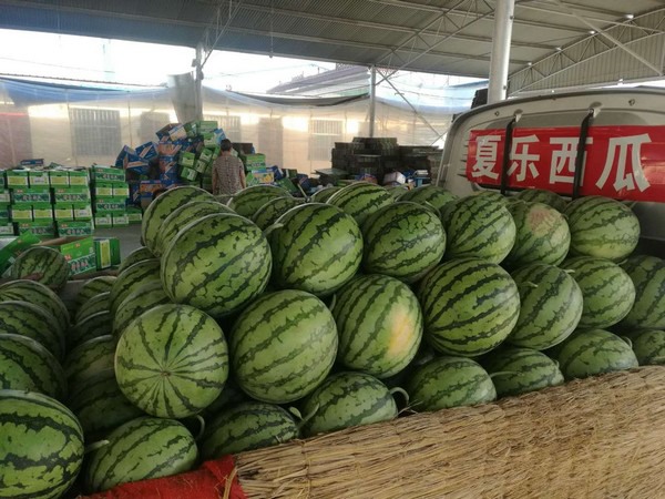 "The overall surface area devoted to watermelon plantation in Xiale county steadily expands every year. This year the surface area expanded by 467 hectares to a total of 1,000 hectares," said manager Tian. "As for the price, the purchase price in Xiale watermelon plantations is around 1.3-1.4 yuan [0.19-0.20 USD] per 0.5 kg, which is 0.3-0.4 yuan [0.04-0.06 USD] per 0.5 kg lower than around this time last year. Our sales suffered from a series of rainy days in south China, which reduced consumer demand for watermelons, but more recently the weather has been nice and our sales have increased."