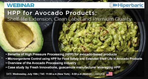 Hiperbaric, the global leader in high pressure processing (HPP) technology for the food and beverage industry, will be hosting a free webinar on HPP for avocado products.
