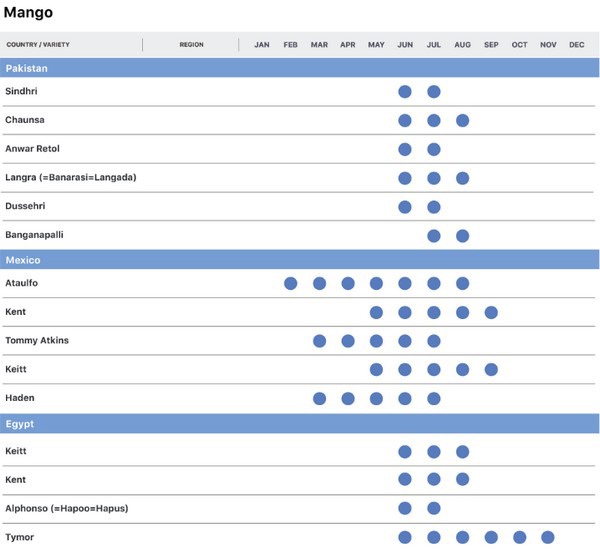 The mango season in Egypt typically ranges from August to September, for which the season for this year is expected to start in mid to late July. During this period, there is a flow of Southeast Asian mangoes in the market, such as from Thailand, while mangoes from India are in their off-season. The main varieties for sale are the Keitt and Kent mangoes.
