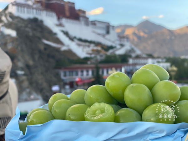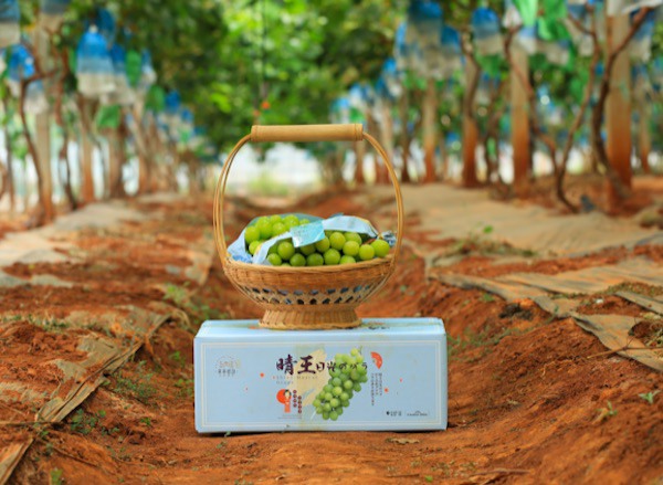 "Qingwang grapes are a type of Sunshine Rose grape. The natural environment in Jianshui county, in Honghe, is well suited for the cultivation of Qingwang grapes. The large temperature differences between day and night cause the grapes to accumulate fruit sugars, which makes these grapes extremely sweet. In addition, Jianshui has red soil that airs well, remains fertile, and drains rain water. That means the taste of the grapes will not change when the wet season arrives."
