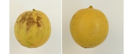 Figure 1: Typical chilling injury symptoms include sunken dark lesions versus non chilling fruit