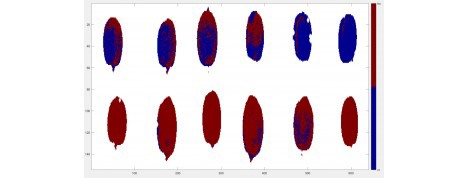 Figure 2: An example of the model predicting chilling injury. Brown pixels predict no chilling damage, blue pixels show where chilling damage is likely to occur.