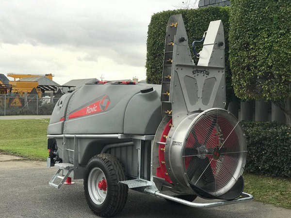 The ground speed is adjusted for different commodities and their tree canopy: hence an apple orchard, for instance, requires a different ground speed (average 6 - 8km/h) and a different air volume to a denser crop like macadamias (average 2.5 - 4km/h), and the VAM system allows for all of these variables.