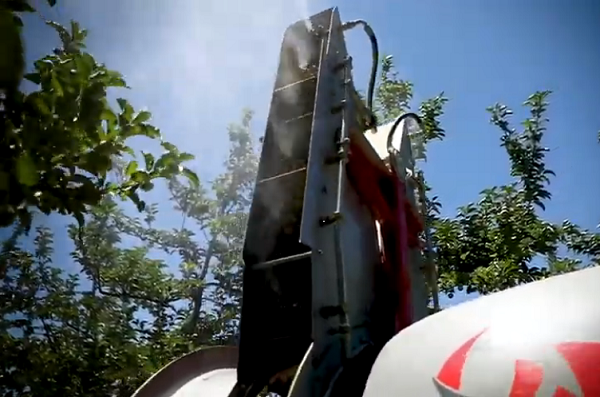 In this way there is a slight time delay between the bottom and top spraying of the same tree, creating conditions for better deposition.