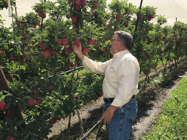 Auvil Fruit Co.'s president of operations, Lee Arthur, inspecting Gala apples.