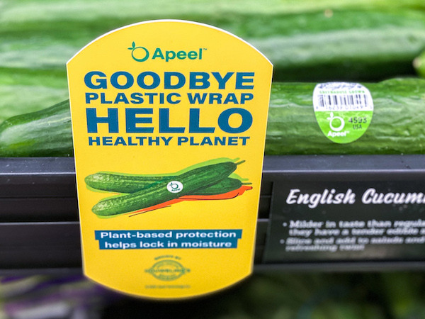 Grown English Cucumbers in partnership with Apeel. While English Cucumbers traditionally have required single-use plastic for shelf-life extension and product quality through the supply chain, Apeel Cucumbers maintain freshness, firmness, and color without single-use plastics. Walmart is among the first to pilot plastic-free cucumbers with Apeel on store shelves.