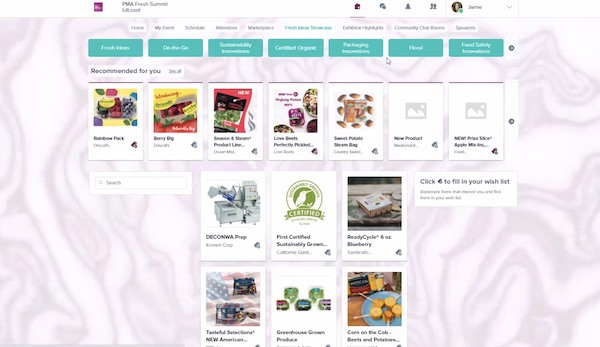 In a recent sneak peek of the Fresh Summit virtual platform, Jamie Hillegas of PMA showed off what the platform will look like and how attendees and exhibitors can navigate through it to make the most out of their experience. “Nothing can completely replace an in-person event, but there are a lot of opportunities to be had in this virtual world, as far as the amount of people who can participate and the way we can connect with each other. We’re excited to see that come to life this year, for people to benefit from this event and to see how we can use this technology to add value to future, in-person events,” Hillegas says.