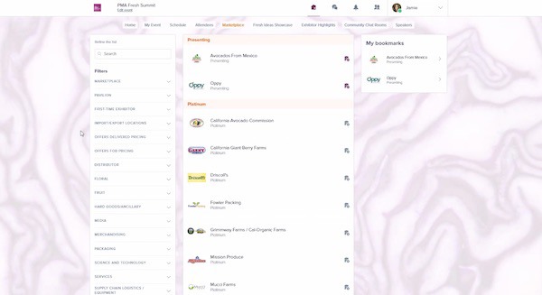 The marketplace, rather than being laid out like a show floor, is a webpage consisting of a sortable list of companies. “You’ll be able to sort the companies in the same way that the show floor was segmented last year: by produce, floral, solutions, etc.,” Hillegas says. “Additionally, you can sort them by pavilion, or by first-time exhibitor or product category.”