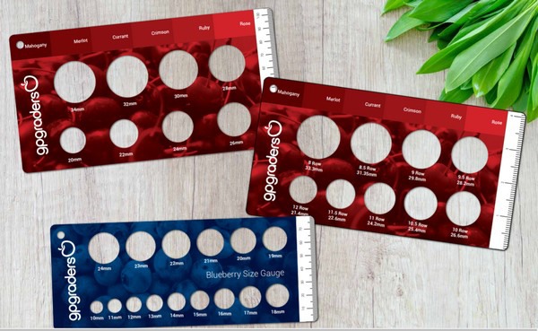 GP Graders have decided to give people in our industry a small gift to cheer them up. They have produced this useful little tool to check the size and colour of cherries and sizing for blueberries.