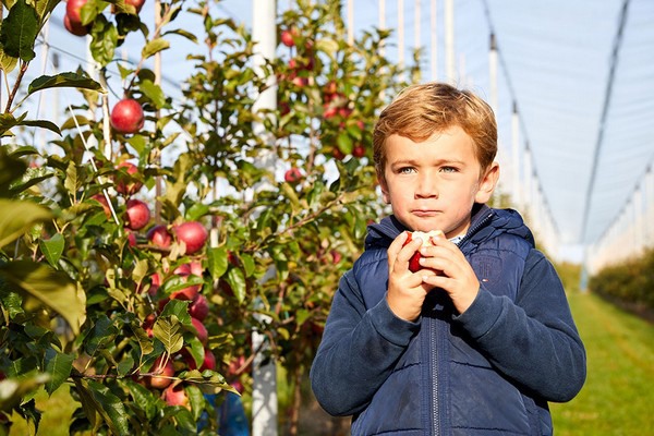This help includes setting up nets. These protect the fruit on the tree against hail. The apple itself is more resistant to diseases. That means they don't as much pesticide treatment. So, the apples can be sold as 'low residue'.