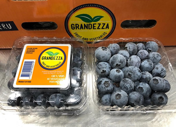 The first blueberries from Peru have arrived at Aartsen in the Netherlands. They're of the company's Grandezza brand. "These blueberries are characterized by lovely, firm, large berries. They're always 16mm+ and are specially harvested. They're packed by hand, so they keep their beautiful glow."