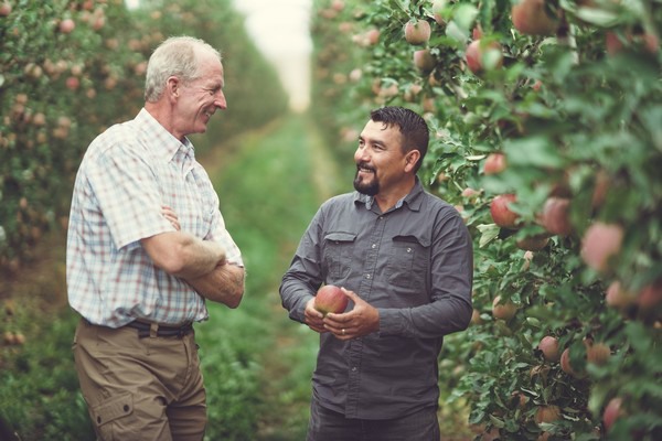 Tim Welsh (left) and Roberto Acevedo in a KIKU orchard.