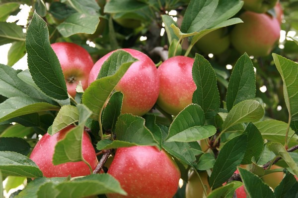 Honeycrisp apples on the trees.