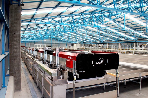 The apples of Southern Chile are waiting for news. In the Unifrutti plant in Linares (total storage capacity 25,658 m2), the installation of a modern Aweta line for sorting and packaging is underway. The line will have a sorting capacity of 60 bins / hour and a packing capacity of 28 t/h.
