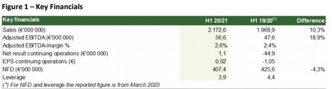 Adding the impact of IFRS 16 to the adjusted EBITDA, this would amount to €76,9 m, up 16,5% from the €66,0m for the first six months of the previous financial year.