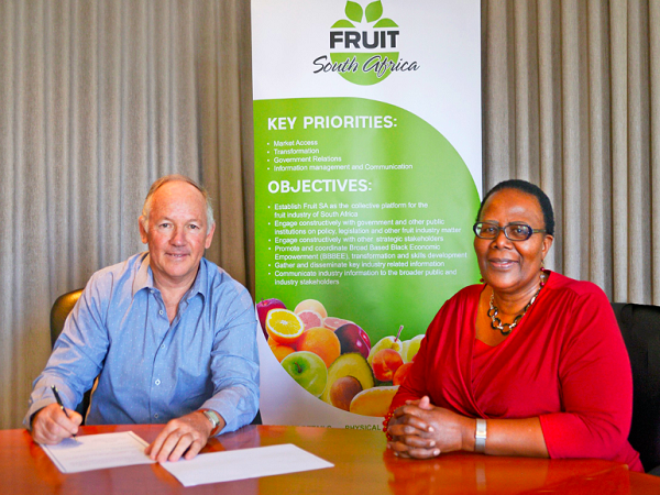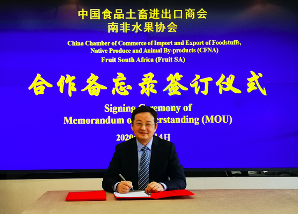 A memorandum of understanding has been signed between Fruit South Africa and the China Chamber of Commerce of Import & Export of Foodstuffs & Native Produce (CFNA).