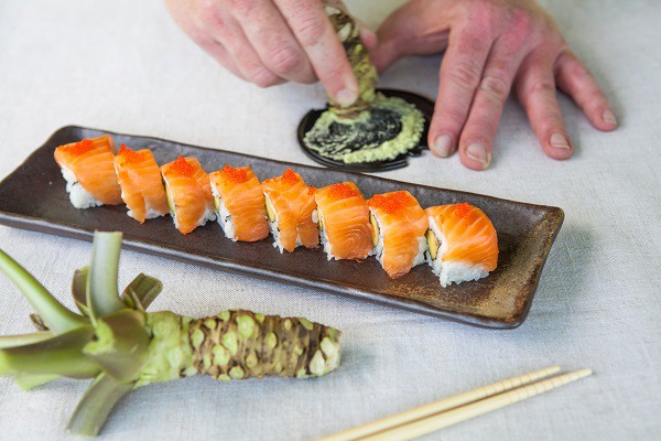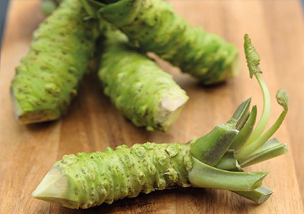 How do you use it? "You need a special wasabi grater. You cut the leaves diagonally so a kind of 'pencil point' remains. Then, you grate it, using circular motions. You must serve the wasabi as soon as possible after grating; then it tastes at its best."