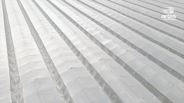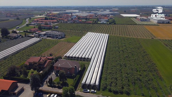All this evidence supports Artes decision to replace the plastic film with a single layer of anti-rain netting, which on the one hand is high performing in the case of rain or bad weather in general, and on the other is breathable and does not weigh too much on the structure.