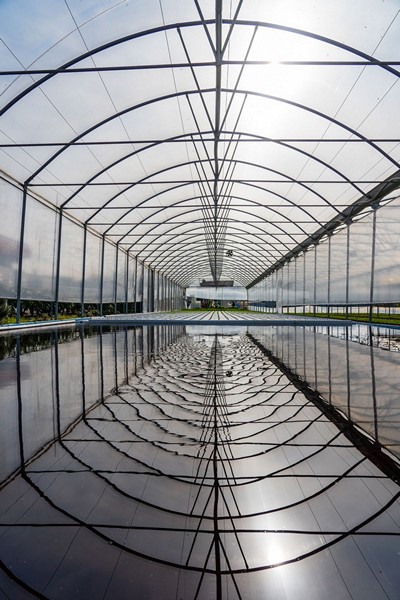 the quantity and quality of the crop. This is one of the research and innovation activities carried out by Idromeccanica Lucchini to meet the needs of the growers. By filtering the light of the plastic films that cover the greenhouses, the life span of tomatoes and leafy vegetables can be extended. The use of the most suitable film for tomatoes resulted in a larger water mass and a redder color. The yield is increased by 3-4% and the tomatoes have a longer shelf life, which facilitates logistics and distribution.