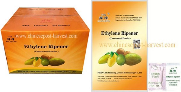 "Small packets of ethylene ripener can be added to the cardboard box with mangoes, during transport or in the store. The packet is added to the cardboard box, and plastic around the box controls the input of air and the expulsion of CO2. When kept around 25 degrees Celsius, two small packets of ethylene ripener can bring a 10-kg cardboard box of mangoes to the right degree of ripeness in 2-3 days. This ethylene ripener is convenient and quick. Using "FYK" can turn the cardboard box into a mobile ripening chamber."