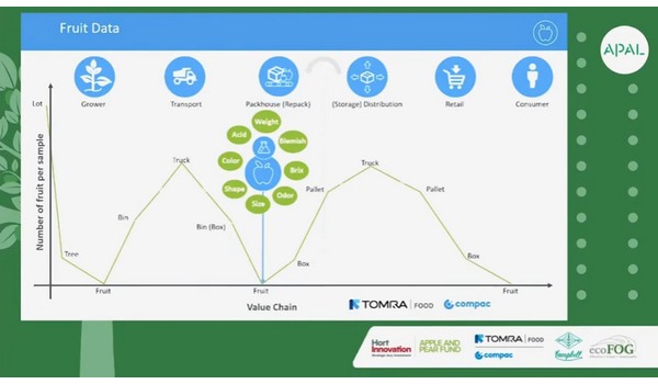 "The best thing about data is that it is available now," Mr Ramson said. "You can have it on existing systems, you can retrofit it into existing platforms and you can gather it today. Inside the packing house, we have the unique opportunity to look at the fruit in an individual sense; when it is first picked off the tree in a harvesting setup, it is a very manual process with a lot of people involved so there is not a lot of automation that is able to be deployed. But inside the packhouse, a fruit sorter, like Compac manufactures, individually looks at every piece of fruit and we get this one chance in time to take a snapshot of a piece of fruit. We can learn everything about it, such as the internal/external quality, weight, shape, size and firmness."