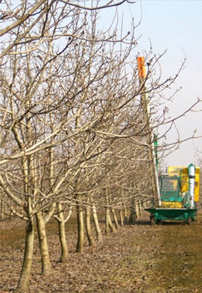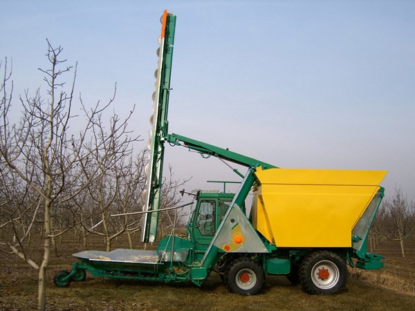 A pruning machine for small fruit trees like walnuts, but that also applies to all other situations where plants can be harvested and chopped mechanically. The machine is called Speedy Cut and is equipped with a multi-disc bar supported by a hydraulic and telescopic arm which is adjustable to obtain different inclinations. The cutting capacity is 8÷10 cm in diameter, at maximum.