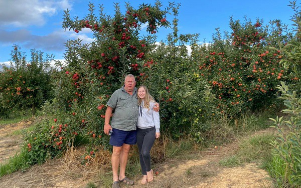 Richaard Lingenfelder and his daughter in a block of Brookfield Gala apples on his farm Arendsig (photo supplied by Richaard Lingenfelder)