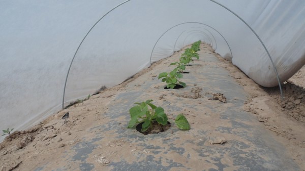 Recently planted honeydew seedlings being prepared for the late spring/early summer harvest in Sonora, Mexico.