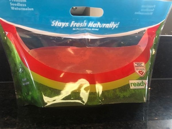 Maglio believes the old method of plastic wrap is generally unreliable and does not securely cling to the fruit/watermelon. Even when there is limited moisture, the “cling” is often not strong enough to keep the watermelon from oxygen exposure or unknown contaminates. The readyripe® pouch offers a barrier protection, along with a tamper-resistant seal and a zipper enclosure.