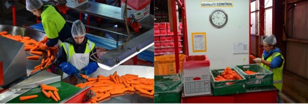 Pyper’s export carrots being inspected and graded at the washing and packing facility, 9th March 2021