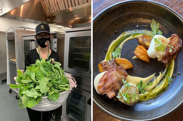 Lauren Couchois, holding a basket of turnip greens will be honored this June. Right: United Fresh celebrates culinary stars who are creating Instagram-worthy dishes.