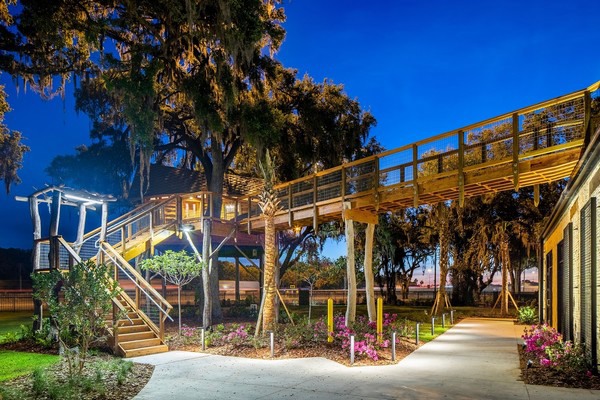 In addition to the office built by construction company Barr and Barr, the campus features a blueberry farm, a 125,000 square foot warehouse/cooling facility with a 20,000 square foot solar array, a digital billboard, a tree house, walking trails and a lake. According to the Florida Department of Transportation, approximately 115,000 vehicles drive past the Wish Farms’ headquarters every day.