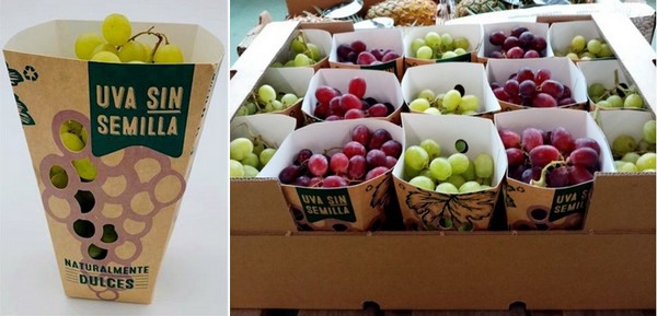 The goal of the new design was to create a 750g package for seedless grapes that would eliminate the need for plastics, while still allowing the fruit to be on display and be appealing.