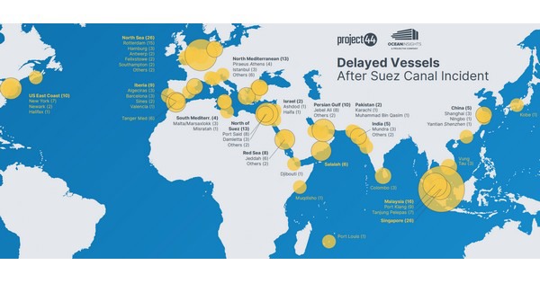 With bottle-necked ships making their way to ports in the wake of the Suez Canal incident, cumulative delays for cargo ships are at 1,017 days, threatening to swamp ports with bottle-necked cargo for weeks to come. With more than 1.9 million TEU (Twenty-foot Equivalent Unit) of capacity involved in the incident, supply chain visibility company project44 is warning shippers that their headaches are not yet over.
