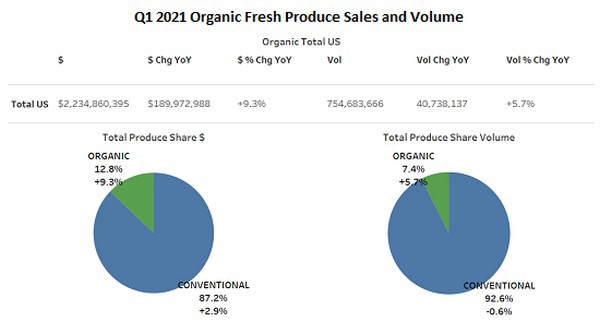Total organic fresh produce sales for Q1 increased by 9.3 percent from the same period in 2020.