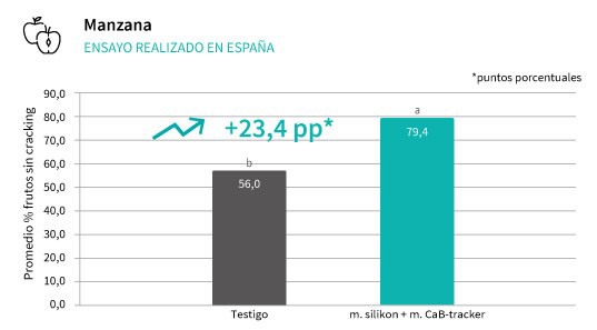 In apples, there's a notable reduction of cracking and an increase in the amount of marketable fruits