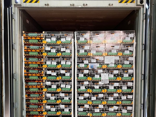 The shipment contained over 22,000 kilos of oranges of the Navel Lane Late variety, preserved during the journey at a temperature of approximately 1º C, allowing the fruit to reach its destination in perfect condition. Once inspected and unloaded, the cold chain remains unbroken up to the point of sale.