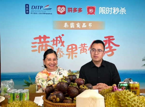The commercial attaché of the Royal Thai consul-general in Shanghai set up a meeting with agriculture-focused technology platform Pinduoduo on the 10th of May to kick off the “2021 Thai product live-stream" activity. The Royal Thai consul-general in Shanghai, Ms. Lada Phumas, and the commercial attaché, Ms. Jeeranun Hirunyasumlith were guests on the government live-stream called ‘last-minute bargain’. They used this platform to promote seasonal Thai fruit for Chinese consumers.