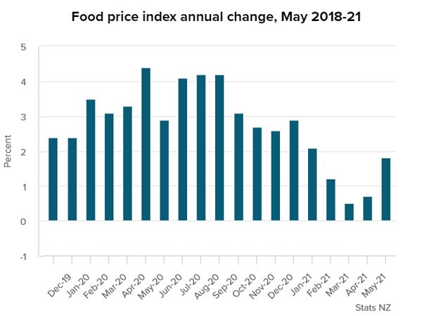 Annual food prices increased 1.8 percent (between May 2020 to May 2021), following a 0.7 percent increase in the year to April 2021.