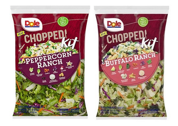 Dole Food Company is expanding its DOLE® Chopped! Salad Kits, the world's most recognized chopped salad kit line, with two new offerings that leverage the #1 consumer preference for ranch dressing.1 DOLE® Chopped! Buffalo Ranch Salad Kit and DOLE® Chopped! Peppercorn Ranch Salad Kit combine fresh chopped DOLE® lettuces and vegetables with special Buffalo and Peppercorn variations of Dole's Ranch Dressing.