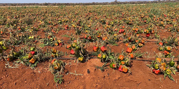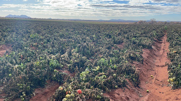 Limpopo tomatoes and peppers severely damaged by freeze, then sunburn