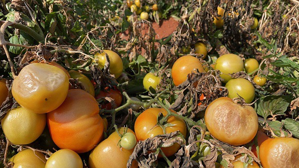 Surviving tomato plants become unproductive and indeterminate growers which would’ve continued setting flowers and fruits under normal conditions, are severely damaged, bringing an early end to the season.