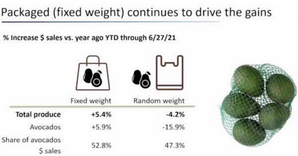 Roerink notes that while the Hass avocado accounts for the majority of the market, new varieties such as the Cocktail and Pinkerton avocados are coming into the category. “It’s very very small sales but they are driving growth and that’s something to explore to get new consumption occasions going,” says Roerink. Other consumer trends include continued strength in fixed weight sales and increasing interest in organics.