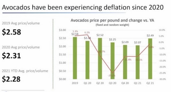 And, volume sales of avocados are up. “We sold one percent more lbs. of avocados in the first half of this year than we in the first half of 2020. But because of a price decline, we are down in dollar growth,” said Roerink. In 2019, the average price per volume was $2.58. In 2020, that dropped to $2.31 and this year, for the first six months, it was an average of $2.28. “Prices are coming back up a little bit but we’re still dealing with lower prices today than in the last couple of years.”