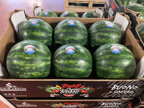 Which watermelons are most popular? "If we were to analyze consumption trends from one year to the next, we could certainly say that the preference for midi watermelons (3 - 5 kg) with micro-seeds is growing strongly. However, looking at the overall numbers, traditional watermelons still dominate the global market. Our selection of traditional watermelon is 100% Dumara (oblong type), which is in line with what is traditionally offered in our reference production area, i.e., southern Lazio. For supermarkets, however, it is the size that is more important than the type (oblong or round). The most popular size is 8-10 kg, with a tendency towards slightly larger sizes in southern Italy and smaller sizes in the north of Italy," replied Testa.