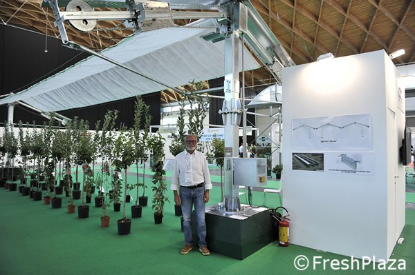 The innovation presented at Macfrut by Carpenteria Fossano is an actual automatic 'umbrella' that can be opened and closed via an electric motor.