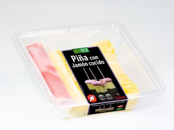 The agri-food company Vicente Peris has launched in the market its 'Pineapple with Cooked Ham' pack, a new combination of selected fruit and fine delicatessen that is marketed under the Peris and Frutifresh brands. This product seeks to provide a complete and nutritionally balanced serving within the IV range offer. It offers the fiber and vitamins of the fruit and the proteins of the ham, in a low-calorie mix that has approximately 62 kcal per every 100 grams of the product.