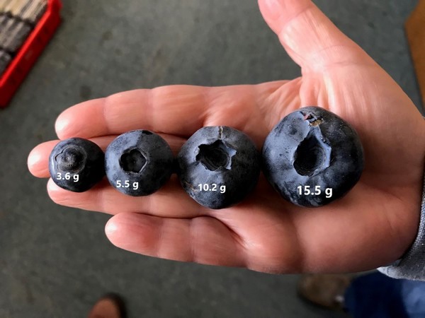 "The Arana is also showing great promise as a parent in new variety selections. Some early selections are shown in photo above, the smallest berry (3.6g) meets 20ml normal spec for Jumbo berries, so consumers have some exciting times ahead.
