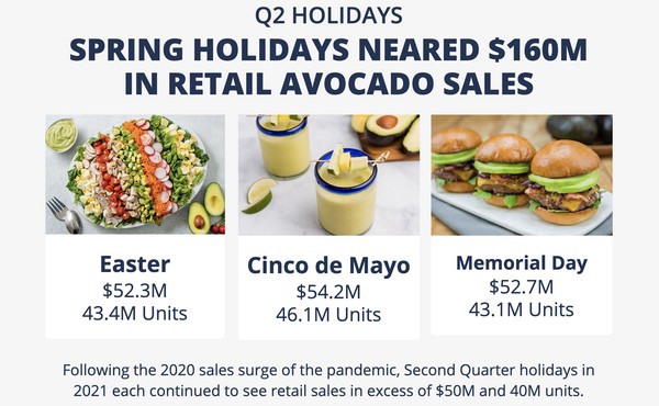 Retail sales of fresh Hass avocados remained above the pre-pandemic levels of 2019 during the second quarter key holidays of 2021, while year-over-year sales softened.